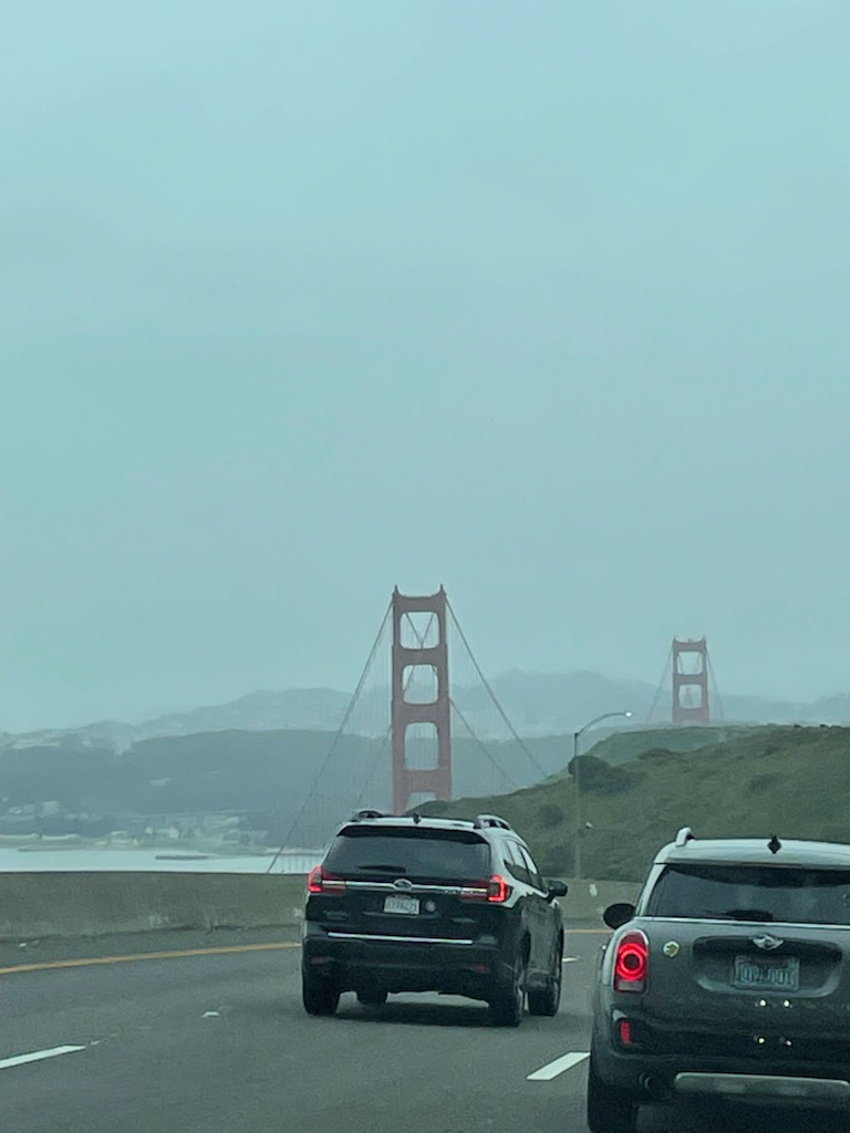 The only thing of note about going back on Tuesday is that I finally got to not only see the Golden Gate Bridge, but I drove us across it. It is such an iconic structure! Too bad the weather was not so great:
